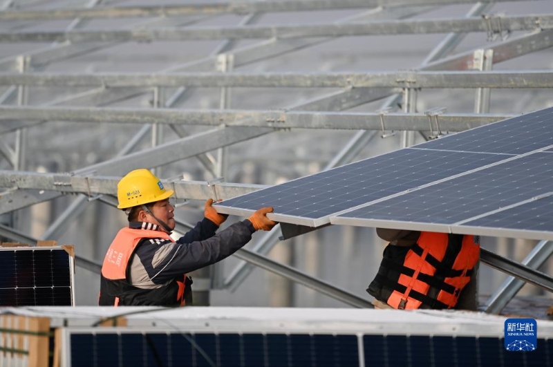 2023年1月5日,建設(shè)者在華電海晶光伏項(xiàng)目B標(biāo)段施工。由中建三局總承包公司承建的天津華電海晶1000兆瓦“鹽光互補(bǔ)”光伏發(fā)電項(xiàng)目建設(shè)穩(wěn)步推進(jìn),項(xiàng)目預(yù)計(jì)在4月建成完工。新華社記者 李然 攝