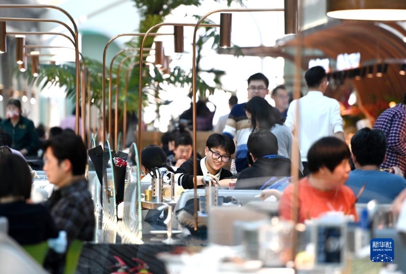 2022年12月31日,顧客在天津恒隆廣場(chǎng)一家自助餐廳內(nèi)用餐。新華社記者 趙子碩 攝