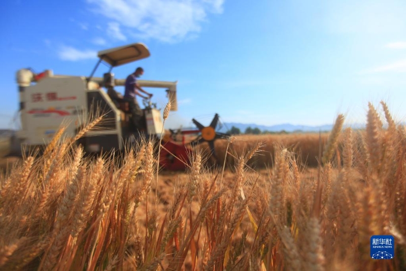 山東省臨沂市平邑縣農(nóng)民駕駛收割機(jī)在田間收獲小麥(2021年6月8日攝)。新華社發(fā)(武紀(jì)全攝)