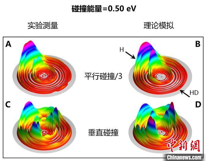 在0.50eV碰撞能下,兩種不同的碰撞構(gòu)型的H+HD→H2+H反應(yīng)的微分反應(yīng)截面差異非常明顯。 中科院大連化物所 供圖