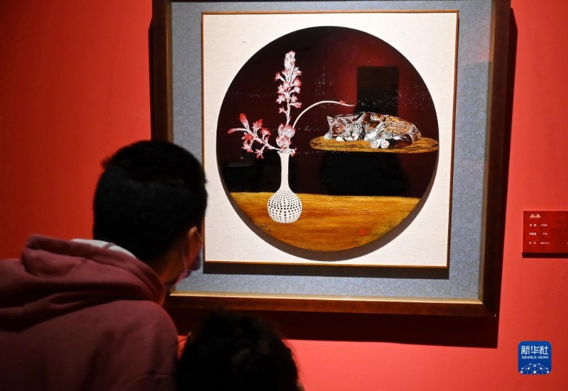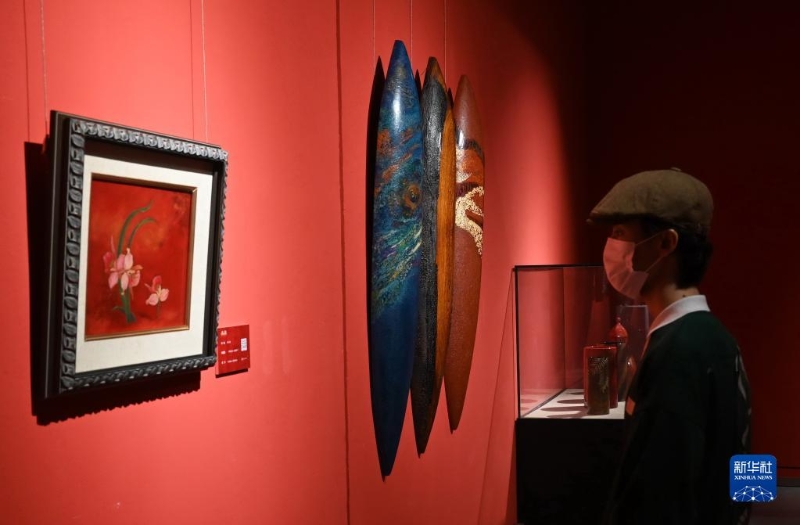 當(dāng)日,“漆緣——臺(tái)灣現(xiàn)當(dāng)代漆藝術(shù)作品展”在福建省美術(shù)館展出。本次展覽分為“傳承與融合”“交流與演變”“材料與美學(xué)”三個(gè)部分,共展出近百件作品。新華社記者 林善傳 攝