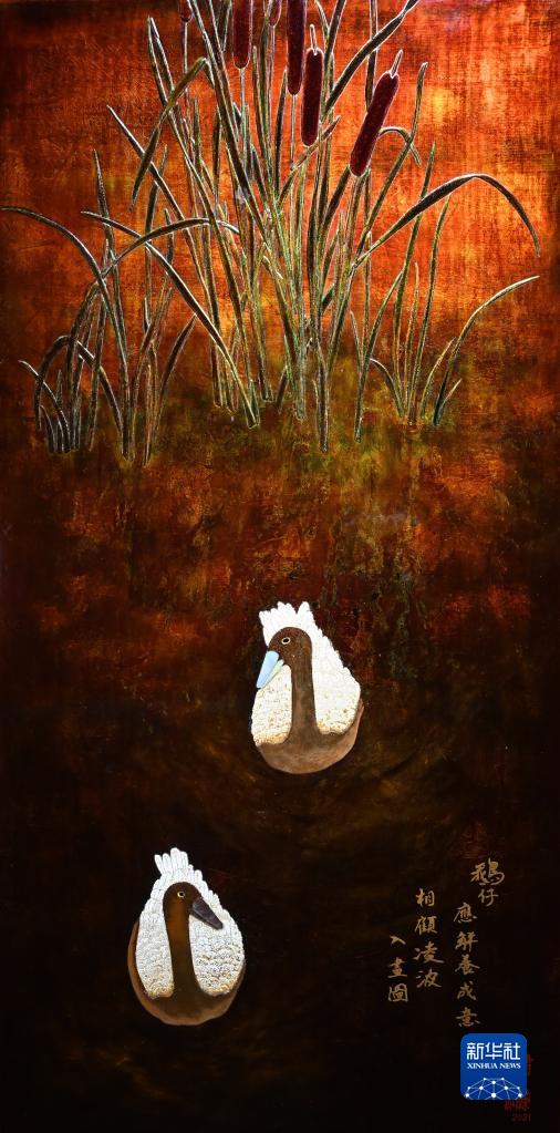 1月13日在福建省美術(shù)館拍攝的漆藝作品。