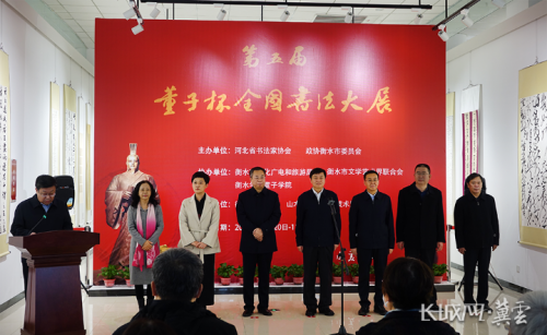 據(jù)悉,第五屆“董子杯”全國(guó)書(shū)法大展,由河北省書(shū)法家協(xié)會(huì)和政協(xié)衡水市委員會(huì)主辦,衡水市文化廣電和旅游局、衡水市文學(xué)藝術(shù)界聯(lián)合會(huì)、衡水學(xué)院董子學(xué)院協(xié)辦?!兜谖鍖谩岸颖比珖?guó)書(shū)法大展作品集》也于開(kāi)幕當(dāng)日發(fā)行。