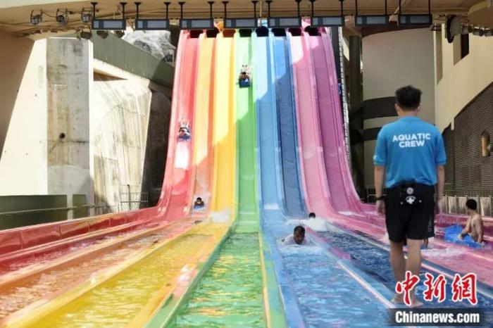 海洋公園同樣不遺余力地進(jìn)行著設(shè)施升級,2021年,海洋公園水上樂園開放迎客,作為香港首個(gè)全年運(yùn)作的全天候水上樂園,園內(nèi)共設(shè)置了五大主題園區(qū)、27個(gè)室內(nèi)室外玩樂設(shè)施,當(dāng)中包括全港首個(gè)室內(nèi)沖浪體驗(yàn)場“沖浪先鋒”及9條設(shè)計(jì)各具特色的動(dòng)感水上滑梯。