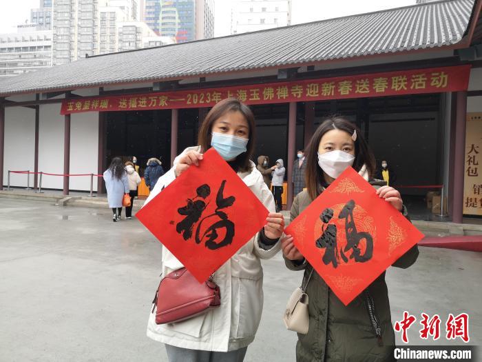 “馬上就到春節(jié)了,我和姐妹一起來寺里許個(gè)新年愿望,正好看到這場送福活動,我們領(lǐng)到了‘?!指械椒浅P疫\(yùn),準(zhǔn)備回家貼在大門上,祝新的一年紅紅火火、福氣滿滿?!鄙虾J忻窈闻繉χ行戮W(wǎng)記者說。