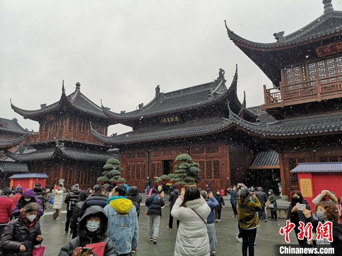 中新網(wǎng)上海1月15日電(記者 范宇斌)1月15日,農(nóng)歷臘月廿四,是南方小年,讓上海人感到驚喜的是,當(dāng)日上海飄起了“2023年的第一場雪”。在漫天飛舞的雪花中,不少上海市民趁著周末時(shí)光走進(jìn)玉佛禪寺,于歲末祈福,許下美好的新年愿望。