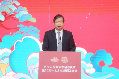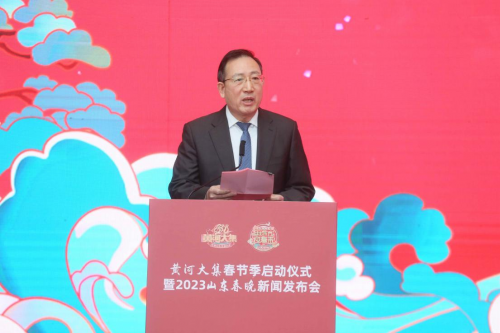 山東省委宣傳部副部長、省電影局局長程守田在致辭中表示,山東作為黃河流域九省區(qū)唯一的東部沿海大省,文化旅游資源富集,山東在傳承弘揚黃河文化上優(yōu)勢突出、責任重大。省委宣傳部會同13個部門單位,共同策劃舉辦“黃河大集”,通過“線下大集+線上帶貨+宣傳推介”的方式,打造融黃河九?。▍^(qū))文化、旅游、好品為一體,共同講好黃河故事的文旅消費品牌,是傳承黃河優(yōu)秀文化、助力鄉(xiāng)村全面振興、滿足群眾美好生活需要的重要舉措。連日來,各地各部門以“黃河大集”為載體,結(jié)合文化、科技、衛(wèi)生、法律“四下鄉(xiāng)”組織實施各類惠民利民項目,展示各具特色的民俗活動,為農(nóng)民群眾辦好事、讓文化服務(wù)到基層、促城鄉(xiāng)好品進市場、帶城里人趕大集迅速火爆全網(wǎng),“黃河大集”傳播力和影響力迅速提升,為全省人民營造出歡樂、祥和、喜慶的中國年味。2023年山東春晚舞美設(shè)計精美、演員陣容強大,節(jié)目質(zhì)量一流,共同傳遞“家的味道”、致敬平凡英雄、展現(xiàn)“山東驕傲”。相信“黃河大集”春節(jié)季和2023山東春晚,一定能為山東人民乃至全國人民獻上一份春節(jié)文化大餐。