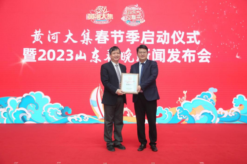 山東廣播電視臺黨委副書記張衛(wèi)華和山東廣播電視臺黨委委員、副總編輯兼電視衛(wèi)星頻道總監(jiān)王忠為山東魯花集團、宏濟堂制藥集團、威高集團、得利斯集團、華潤三九澳諾制藥、華為山東終端等2023山東春晚合作伙伴授牌。