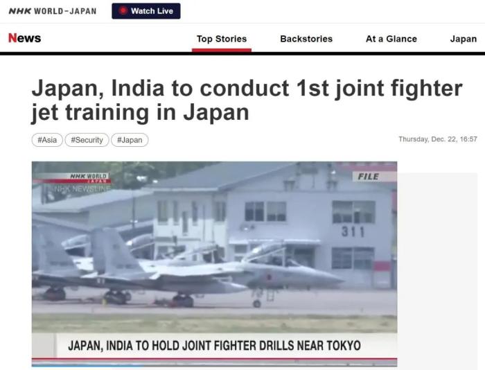 日本廣播協(xié)會(huì)(NHK)有關(guān)日本和印度戰(zhàn)斗機(jī)首次進(jìn)行聯(lián)合演習(xí)的報(bào)道。