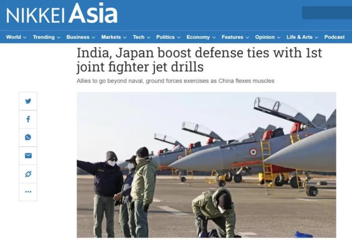 事實(shí)上,早在2019年11月,日印雙方就在印度新德里就聯(lián)合空戰(zhàn)訓(xùn)練計(jì)劃達(dá)成一致,但由于新冠疫情影響不斷被推遲,且一推就推到了3年后,這可急壞了等待與印度空軍蘇-30MKI戰(zhàn)斗機(jī)進(jìn)行聯(lián)合演習(xí)的日本。