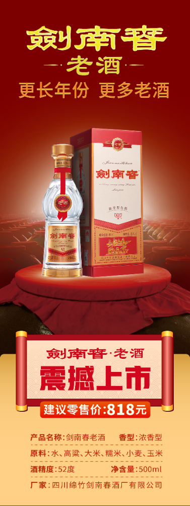 2023年伊始,劍南春重磅推出了劍南春老酒,或?qū)⒊蔀橥苿?dòng)老酒市場(chǎng)發(fā)展的一大力作。劍南春在上世紀(jì)90年代的劍南春經(jīng)典款基礎(chǔ)上,復(fù)刻創(chuàng)新,迭代升級(jí)推出來定位800元價(jià)位的“劍南春老酒”。其產(chǎn)品定位是水晶劍南春的上行產(chǎn)品。這款重磅單品的推出,意義非凡,自此劍南春形成了由水晶劍南春、劍南春老酒及珍藏級(jí)劍南春三款產(chǎn)品組合而成的產(chǎn)品結(jié)構(gòu),充分展示了劍南春在500-1000元次高端價(jià)位帶的戰(zhàn)略布局的完成。