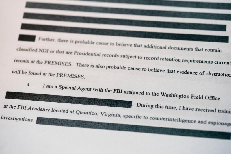 2022年8月26日,美國司法部公布聯邦調查局申請搜查前總統特朗普住所海湖莊園時向法院提交書面證詞的部分內容。這份38頁的文件有大量內容被涂黑加密。司法部解釋說,這是為了保護證人不受恐嚇或報復。新華社記者劉杰攝