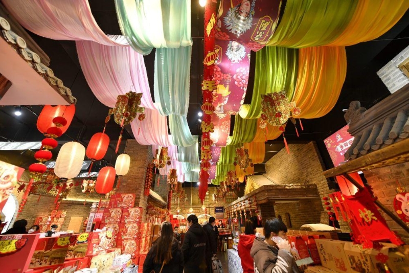 1月12日,顧客在河北省唐山市豐潤(rùn)區(qū)2023“非遺”年貨節(jié)上游覽選購(gòu)。新華社記者 牟宇 攝
