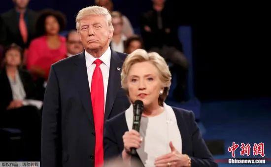 資料圖:當(dāng)?shù)貢r(shí)間2016年10月9日,華盛頓大學(xué),特朗普與希拉里參加總統(tǒng)大選辯論。