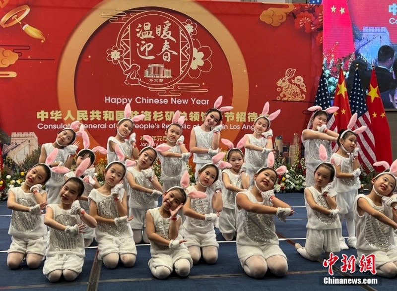 當(dāng)晚,約800位中美各界人士出席招待會(huì),共同慶祝中國(guó)農(nóng)歷新年。會(huì)場(chǎng)內(nèi)張燈結(jié)彩,氣氛喜慶祥和。2023歲為癸卯兔年,孩子們裝扮成可愛(ài)的小兔子在招待會(huì)上表演舞蹈,博得全場(chǎng)掌聲。