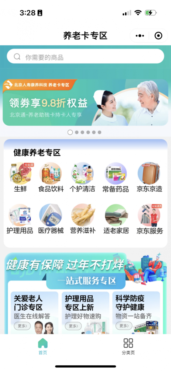 北京人壽康養(yǎng)科技養(yǎng)老卡專區(qū)是由北京人壽康養(yǎng)科技有限責(zé)任公司和京東健康攜手打造,主要根據(jù)中老年客戶需求進(jìn)行了定制化設(shè)計(jì),用戶體驗(yàn)更加適老化,同時(shí)共享京東供應(yīng)鏈資源、物流能力和服務(wù)網(wǎng)絡(luò),春節(jié)期間也能送貨上門。專區(qū)精選了京東自營(yíng)的4萬(wàn)多款適合老年人的產(chǎn)品,北京通-養(yǎng)老助殘卡用戶還可專享98折優(yōu)惠,并直接使用失能老年人護(hù)理補(bǔ)貼(失能補(bǔ)貼)、高齡老人津貼(養(yǎng)老券)。為客戶提供“品質(zhì)有保障、消費(fèi)有補(bǔ)貼、花錢有實(shí)惠”的一站式舒心購(gòu)物體驗(yàn)。