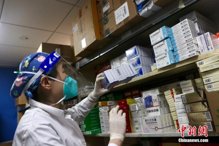資料圖:北京某社區(qū)衛(wèi)生服務(wù)中心,醫(yī)務(wù)人員正將配送到的藥品放入藥架。 中新社記者 易海菲 攝