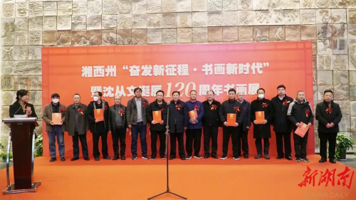 12月16日上午,湘西州“奮發(fā)新征程˙書畫新時(shí)代”暨沈從文誕辰120周年書畫展在州博物館開幕。中國書法家協(xié)會(huì)副主席、原湖南省文聯(lián)主席、湖南省書法家協(xié)會(huì)主席鄢福初出席并宣布書畫展開幕。湘西州政協(xié)黨組書記、主席李平致辭,州委常委、州委宣傳部部長楊彥芳主持,州人大常委會(huì)副主任向宏國出席。
