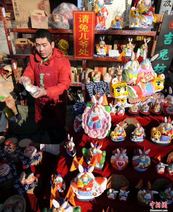 中國人的兔崇拜雖有一定神靈崇拜特征,但總體仍是十分世俗的。以北京為例,北京人崇拜兔兒爺,但孩子們也把兔兒爺當(dāng)玩具和陪伴。兔兒爺出現(xiàn)在泥塑作品、木刻版畫等各類藝術(shù)品上,一直是春節(jié)廟會上的“網(wǎng)紅”,成為北京發(fā)展勢頭最盛的民俗用品之一。兔兒爺?shù)倪@些特點(diǎn),反映中華傳統(tǒng)文化與北京地域文化相結(jié)合形成的民俗現(xiàn)象,成為春節(jié)民俗活動的重要載體,與人們生活的聯(lián)系也更加緊密深入。