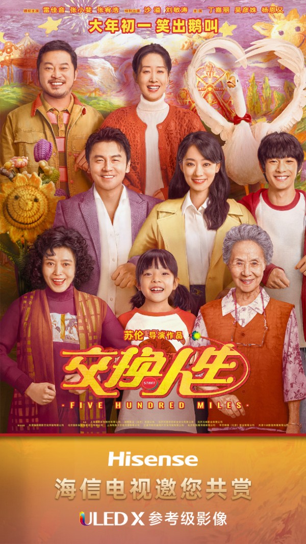 近日,由蘇倫導(dǎo)演,雷佳音、張小斐、張宥浩領(lǐng)銜主演的喜劇電影《交換人生》官宣定檔大年初一。這是繼《超時空同居》后導(dǎo)演蘇倫與雷佳音的再度合作,也是張小斐繼春節(jié)檔口碑佳作《你好,李煥英》后,再度回歸春節(jié)檔。除此之外,沙溢、劉敏濤、余皚磊、岳云鵬、楊迪、徐志勝等人的參演也讓大家的期待拉滿。作為此次電影的合作伙伴,海信電視也在新年來臨之際,用參考級影像為觀眾送上新春祝福。