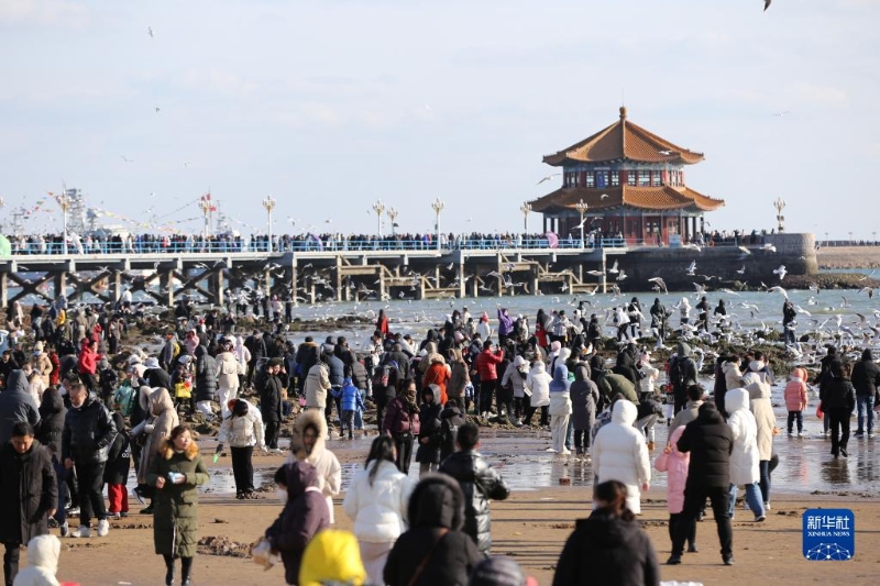1月25日,游客在山東省青島棧橋風(fēng)景區(qū)游玩。