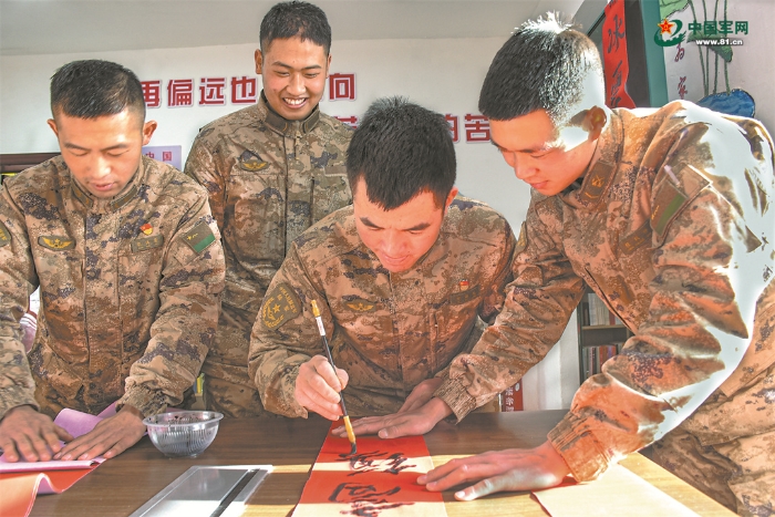 得此評價,這副春聯(lián)自然就成為了“傳代之作”。50多年來,研磨執(zhí)筆者在換,隸草行篆字體在變,紙張質(zhì)地皆有不同……但春聯(lián)上的字卻一個沒變過。 一聯(lián)續(xù)日月,50多年春聯(lián)沒變,二甫官兵的光榮與夢想也在延續(xù)。踐行如初,他們用戍邊衛(wèi)國的戰(zhàn)績驕傲地應答山河的回響。