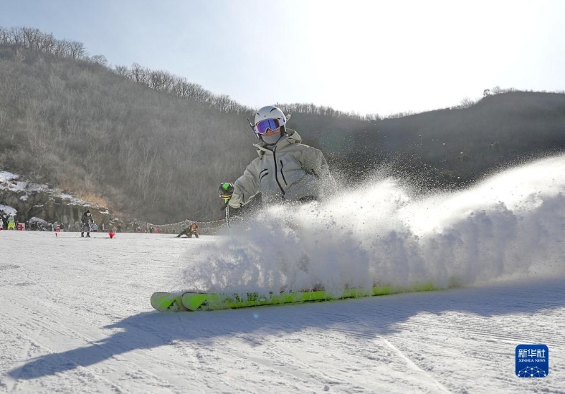 1月26日,在位于河北省秦皇島市海港區(qū)石門寨鎮(zhèn)的老君頂景區(qū)內(nèi),游客在體驗滑雪。