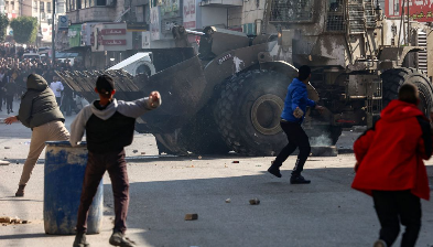 △1月26日,在約旦河西岸北部城市杰寧,巴勒斯坦抗議者與以色列軍隊發(fā)生沖突。