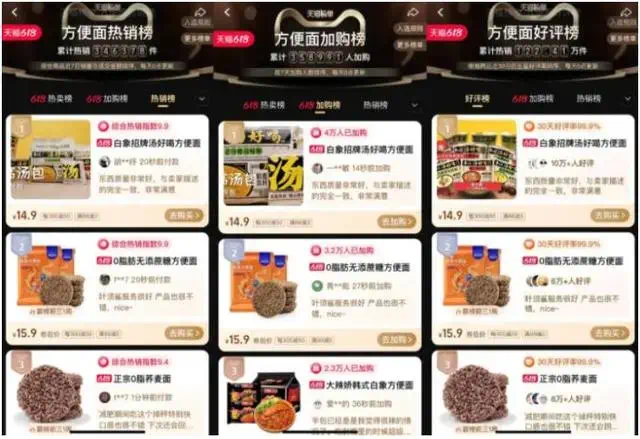 京東618預(yù)售期內(nèi),白象湯好喝招牌豬骨面便以超3萬件的銷量位居榜首,超方便食品榜第二名近3倍,累計(jì)購買人數(shù)也達(dá)后者的2倍多。