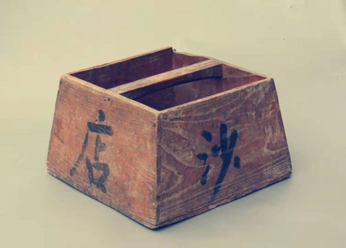 沙家店糧站用過的斗,梯形的木盒子,四周和底部五面合圍,上部開口的中間有一斗柄。斗的尺寸為38×32×23厘米,有輕微破損。斗身用毛筆書寫著“沙店糧站”字樣,它是解放戰(zhàn)爭時期沙家店糧站使用過的一種計量工具。