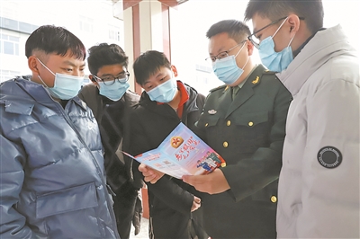 連日來,江西省上饒市廣豐區(qū)人武部組織工作人員進(jìn)社區(qū)開展征兵宣傳。圖為征兵工作人員為適齡青年講解征兵政策。黃彬彬攝