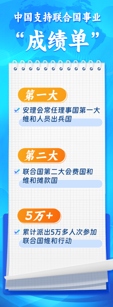 作為聯(lián)合國安理會(huì)常任理事國和第一個(gè)在《聯(lián)合國憲章》上簽字的國家,中國始終捍衛(wèi)憲章的宗旨和原則,始終維護(hù)聯(lián)合國在國際事務(wù)中的核心作用,堅(jiān)定不移做世界和平的建設(shè)者、全球發(fā)展的貢獻(xiàn)者、國際秩序的維護(hù)者。梳理相關(guān)的事實(shí)與數(shù)據(jù),人們可以看到中國支持聯(lián)合國事業(yè)清晰斐然的“成績單”。