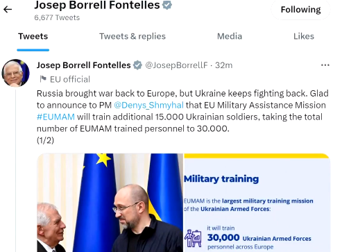 據(jù)烏克蘭媒體報(bào)道,歐洲安全與外交政策高級(jí)代表博雷利2日與烏克蘭總理什梅加爾會(huì)見后在社交媒體上宣布,歐盟將增加幫助培訓(xùn)烏克蘭軍人的計(jì)劃,從總?cè)藬?shù)1.5萬(wàn)人增加到3萬(wàn)人。歐盟還將提供針對(duì)豹式坦克在內(nèi)的新裝備和技術(shù)培訓(xùn)。