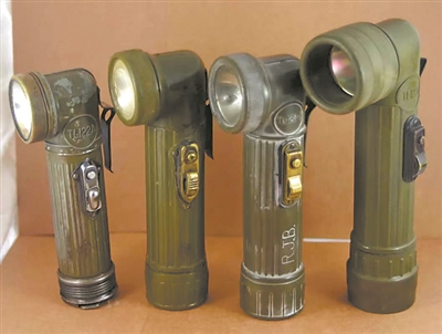 戰(zhàn)爭(zhēng)題材的影視作品離不開對(duì)當(dāng)時(shí)戰(zhàn)爭(zhēng)場(chǎng)景的還原,追溯其“原型”,L型手電筒最早出現(xiàn)在二戰(zhàn)時(shí)期。除了被“掰彎”的燈頭外,其他部件與后來常見的“大頭手電筒”基本相似,使用一號(hào)電池供電。