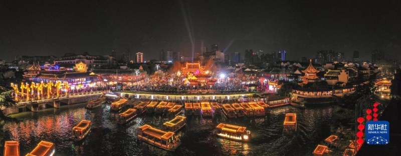 這是2月4日在南京夫子廟景區(qū)拍攝的秦淮燈會(huì)夜景(無(wú)人機(jī)照片)。