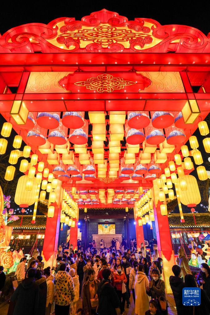 元宵節(jié)來(lái)臨,位于江蘇南京夫子廟秦淮風(fēng)光帶的第37屆秦淮燈會(huì)花燈璀璨、流光溢彩,吸引眾多市民游客前來(lái)觀景賞燈。