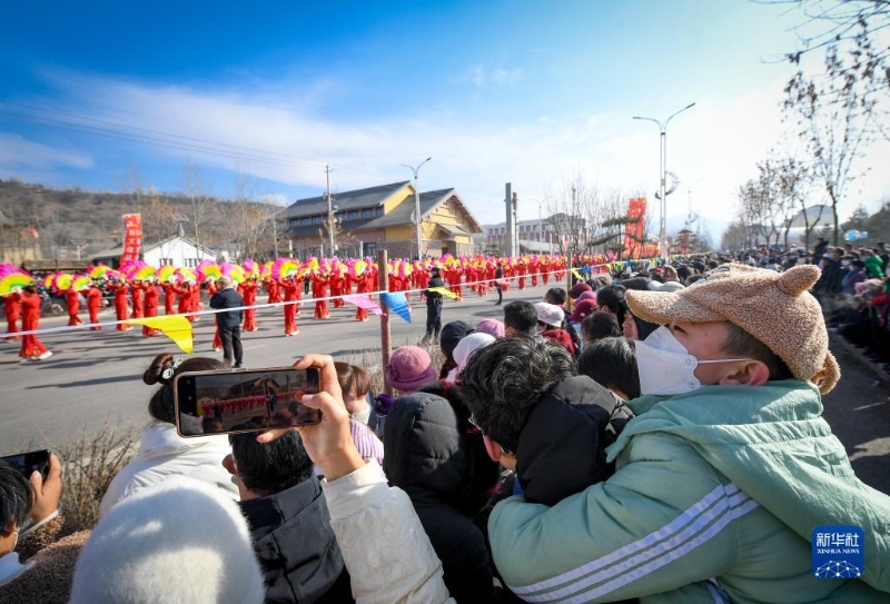 2月5日,人們在寧夏固原市隆德縣觀看社火表演。