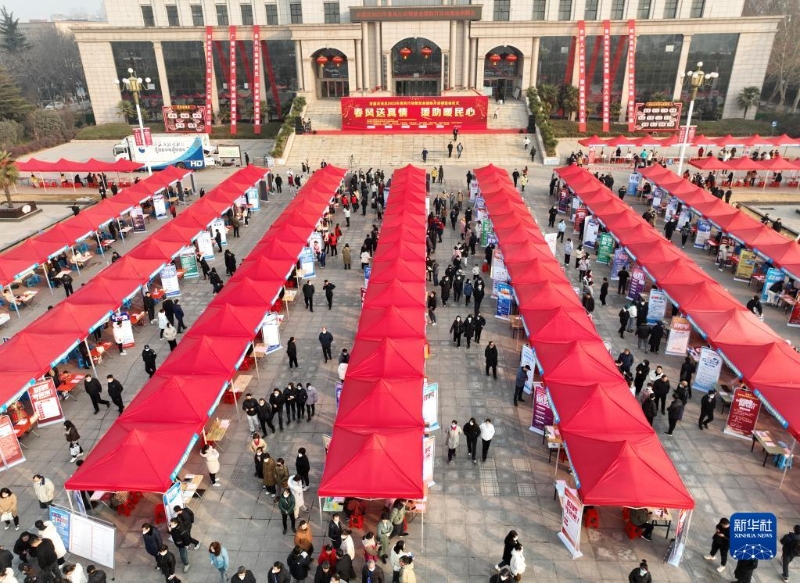 這是2月5日拍攝的河南省濟(jì)源市“春風(fēng)行動(dòng)”暨就業(yè)援助月大型招聘會(huì)現(xiàn)場(chǎng)(無人機(jī)照片)。