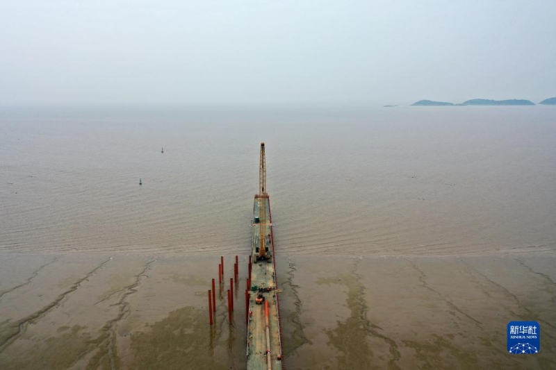 工程人員在通蘇嘉甬高鐵杭州灣跨海鐵路大橋施工現(xiàn)場鋪設(shè)棧橋,為后期工程做準(zhǔn)備(2023年2月1日攝,無人機(jī)照片)。2022年11月30日開工建設(shè)的通蘇嘉甬高鐵杭州灣跨海鐵路大橋全程跨海,總長約29.2公里,為設(shè)計(jì)時速350公里的雙線高速鐵路橋,是目前世界上在建長度最長、建設(shè)標(biāo)準(zhǔn)最高的高速鐵路跨海大橋。新華社記者 黃宗治 攝