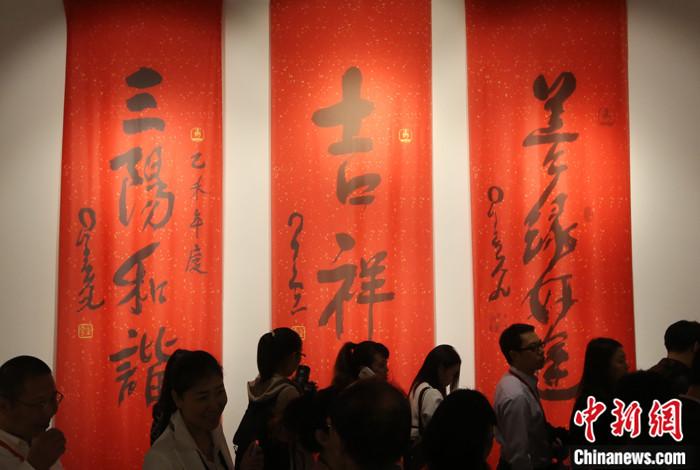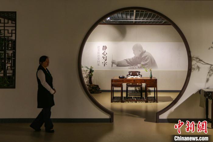 資料圖為星云大師的《一筆字》展覽現(xiàn)場。 圖/中新社記者 泱波