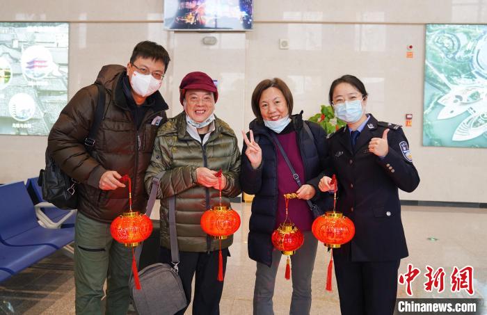 元宵節(jié)前夕,邊檢民警向候船旅客送花燈?!钴啊z