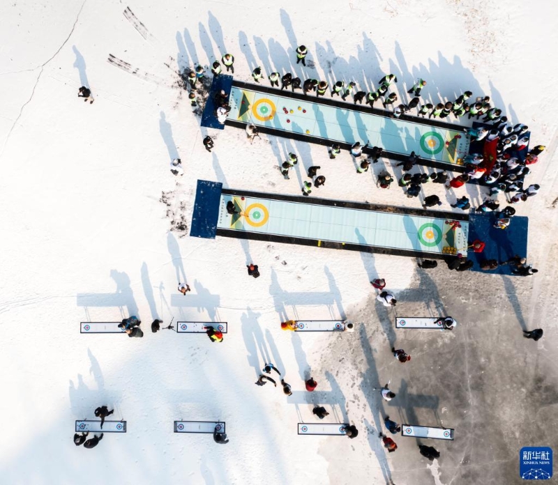 這是2月7日拍攝的旱地冰壺和迷你冰壺的活動現(xiàn)場(無人機照片)。新華社記者 才揚 攝