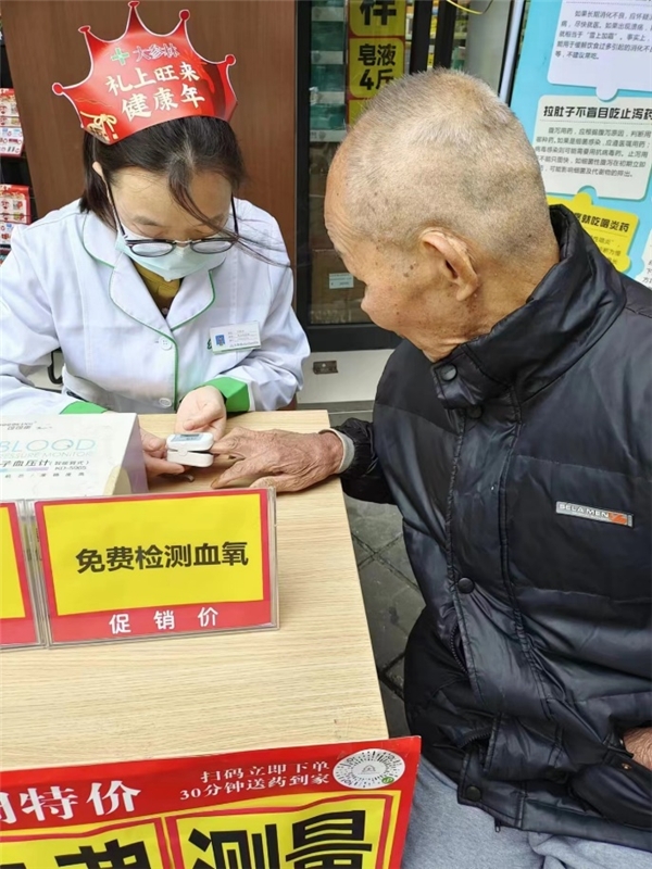 從2023年1月起,大參林在全國舉辦“免費檢測血氧”公益活動,市民前往指定的門店即可免費享受血氧飽和度檢測服務(wù)。本次公益活動覆蓋8個省超45個城市超600家門店。