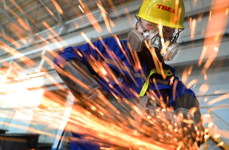 1月28日,在湖南省衡陽市,特變電工衡陽變壓器有限公司工人進(jìn)行打磨作業(yè)。新華社發(fā)(曹正平 攝)