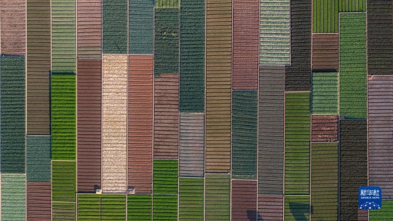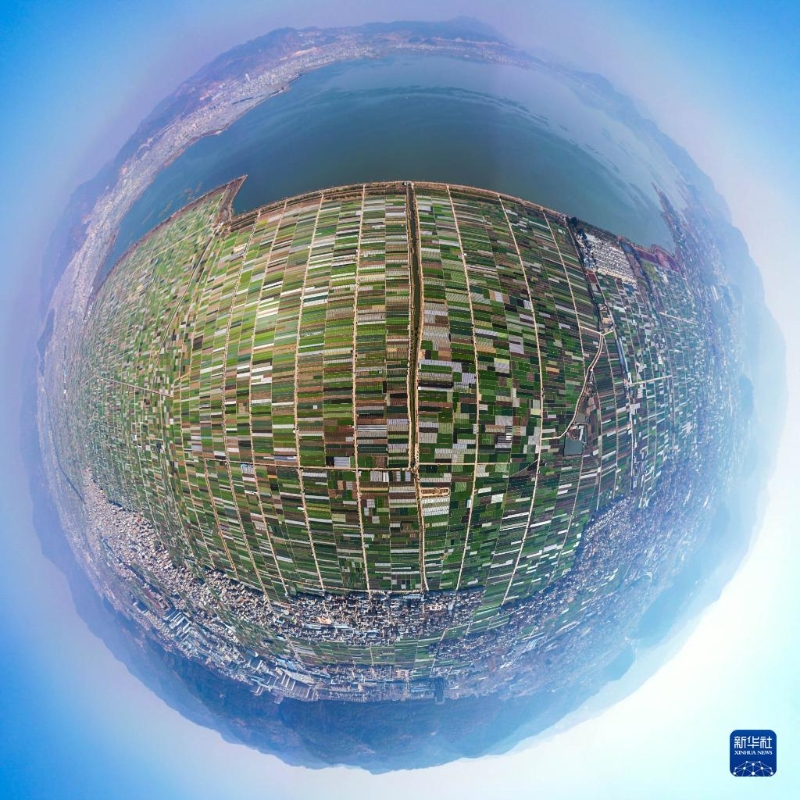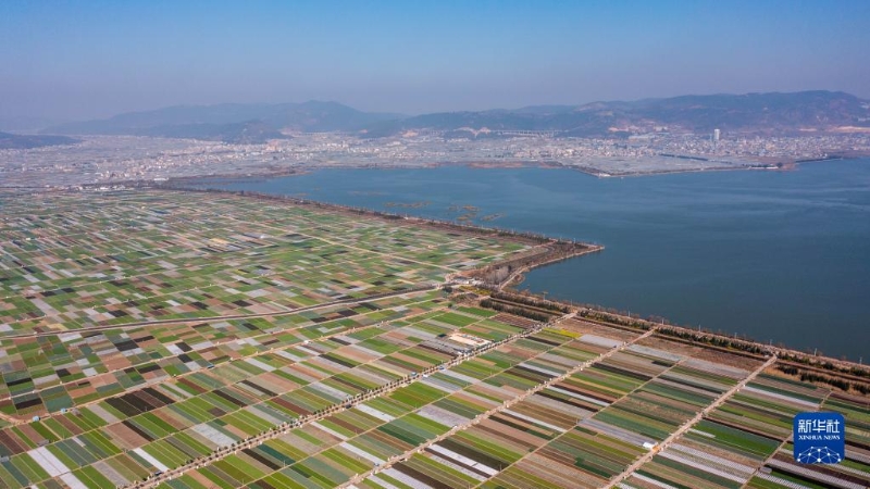 早春時節(jié),云南省玉溪市通海縣田園風光秀美。五彩斑斕的農(nóng)田與湖水、山巒交相輝映,構(gòu)成了一幅美麗的畫卷。新華社記者 胡超 攝