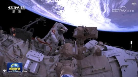 這是航天員費(fèi)俊龍、張陸的首次漫步太空,出艙任務(wù)期間,航天員鄧清明在艙內(nèi)進(jìn)行支持工作。費(fèi)俊龍、張陸首先進(jìn)行的是夢(mèng)天艙擴(kuò)展泵組的安裝工作。完成安裝后,費(fèi)俊龍通過大小機(jī)械臂組合臂開始進(jìn)行轉(zhuǎn)移,張陸借助艙外扶手進(jìn)行自主轉(zhuǎn)移,陸續(xù)完成了腳限位器安裝等一系列任務(wù)。