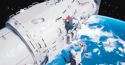 航天員從天宮空間站出艙開展巡天空間望遠(yuǎn)鏡維護(hù)作業(yè)示意圖。