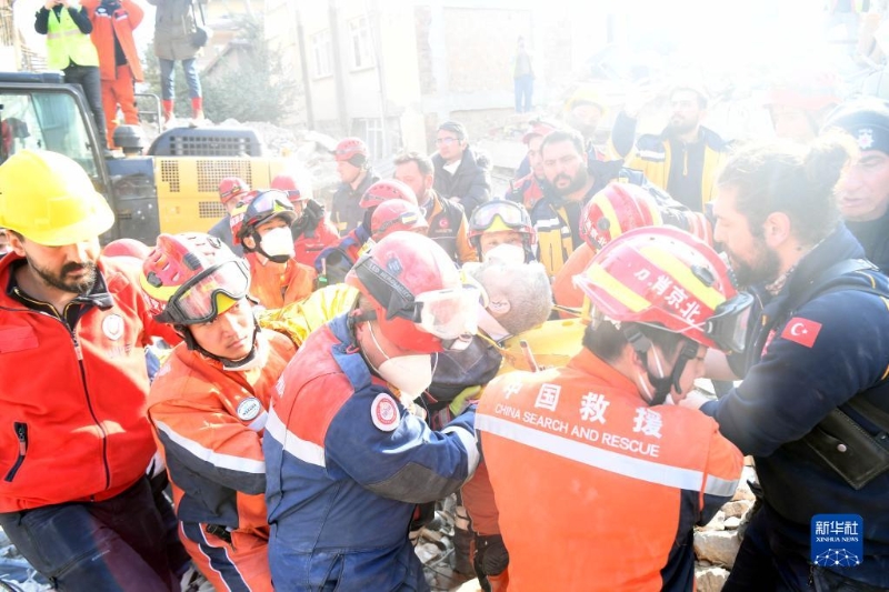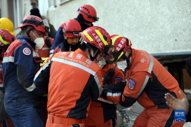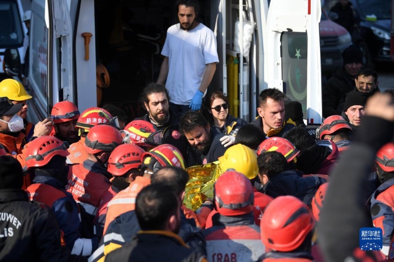 當(dāng)?shù)貢r(shí)間12日下午,正在土耳其哈塔伊省安塔基亞市實(shí)施搜救的中國救援隊(duì)營救出一名幸存者。