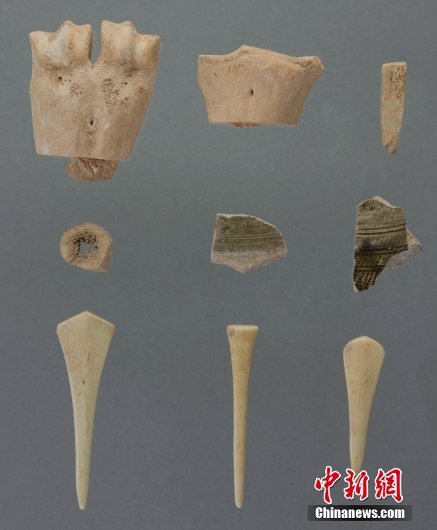 2月12日,記者從陜西省考古研究院獲悉,考古人員在位于陜西省韓城市的陶渠遺址發(fā)現(xiàn)西周、東周時期8座“甲”字形大墓,其中7座已發(fā)掘完成,初步推斷陶渠遺址是兩周之際的“京”國所在地。圖為2022年11月16日拍攝的出土原始瓷片、骨笄與制骨廢料。陜西省考古研究院 供圖