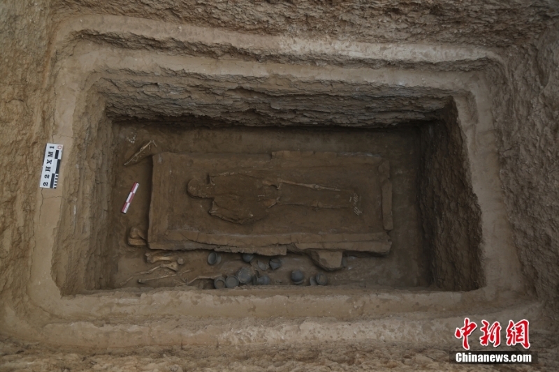 2月12日,記者從陜西省考古研究院獲悉,考古人員在位于陜西省韓城市的陶渠遺址發(fā)現(xiàn)西周、東周時期8座“甲”字形大墓,其中7座已發(fā)掘完成,初步推斷陶渠遺址是兩周之際的“京”國所在地。圖為2022年12月24日拍攝的墓穴。陜西省考古研究院 供圖